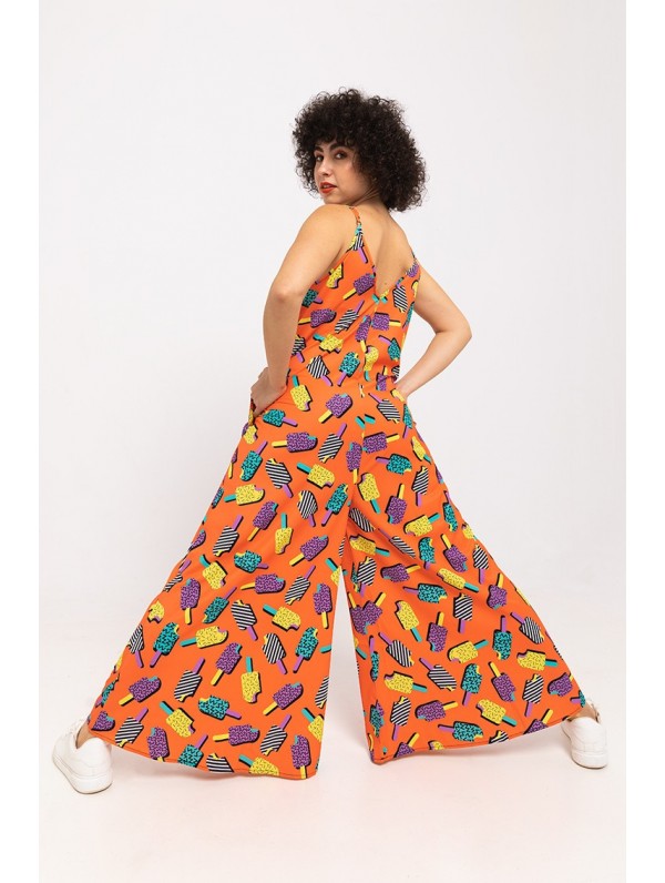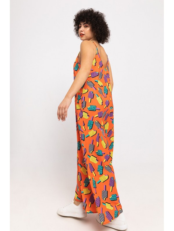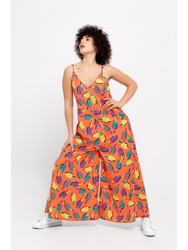 Mono lencero con tirante graduable y escote en pico, camal ancho, cuerpo suelto.